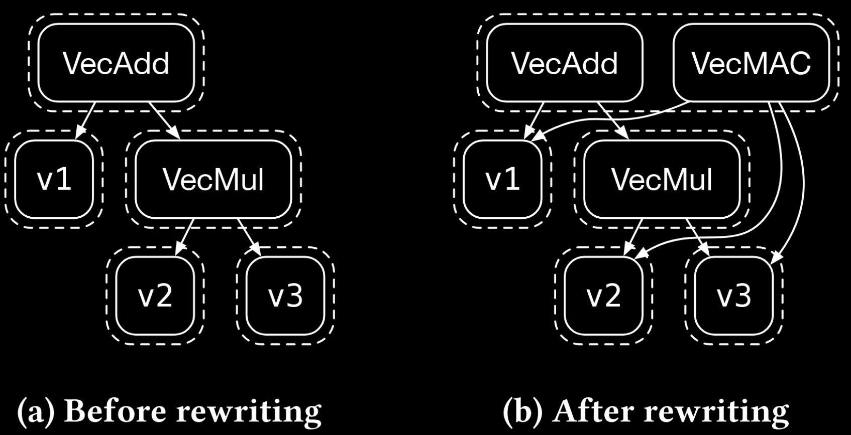 ### What we need? > instruction finding from domain of applications - program rewrites: [eggcc](https://github.com/egraphs-good/eggcc)? [jlm](https://github.com/phate/jlm)? what else? - tractable EqSat: - pruning ([Isaria](https://dl.acm.org/doi/10.1145/3617232.3624873))? guiding ([egg-sketch](https://dl.acm.org/doi/10.1145/3632900))? - learn instruction: - what to learn? acceptable instr.? cost model? - how to learn? [Babble](https://dl.acm.org/doi/10.1145/3571207)? - more efficient extraction?